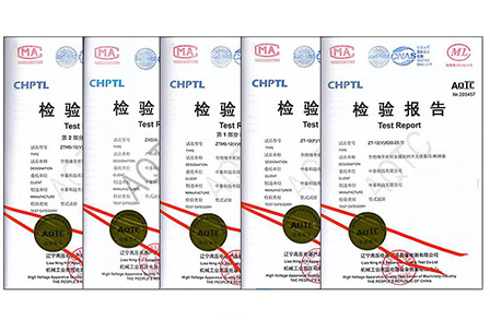 2020年05月24日,我司先后經(jīng)過**電器產(chǎn)品質量監(jiān)督檢驗中心、遼寧高壓電器產(chǎn)品質量檢測有限公司等機構的檢驗,我司產(chǎn)品符合質量要求,順利取得高壓產(chǎn)品檢驗報告